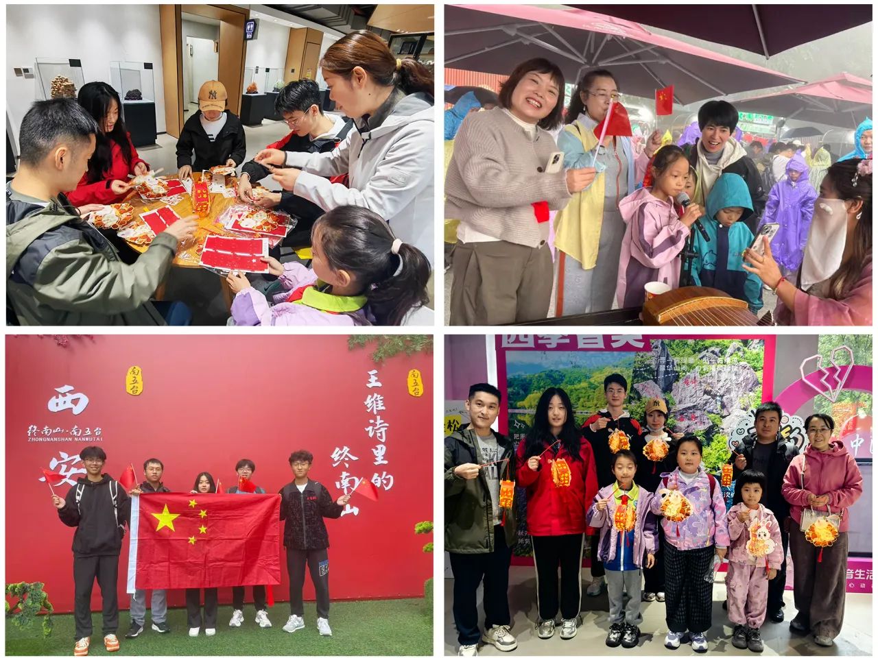 圍繞“家國同慶、秋韻終南”主題,兩景區(qū)精心策劃多元互動活動,破解雨天游覽“乏味感”。翠華山景區(qū)推出“終南唐詩大闖關(guān)”、非遺團(tuán)扇制作、親子趣運(yùn)動嘉年華等十大特色活動,同步升級“天洞花?!鼻锛揪坝^,打造“文化+親子+自然”沉浸式體驗場景,引導(dǎo)游客在室內(nèi)及遮蓋區(qū)域互動,有效豐富雨天游覽內(nèi)容。南五臺景區(qū)設(shè)置創(chuàng)意打卡區(qū)、雙節(jié)簽名墻及“和國旗同框”合影點(diǎn)讓游客在雨中仍能沉浸式感受節(jié)日氛圍。