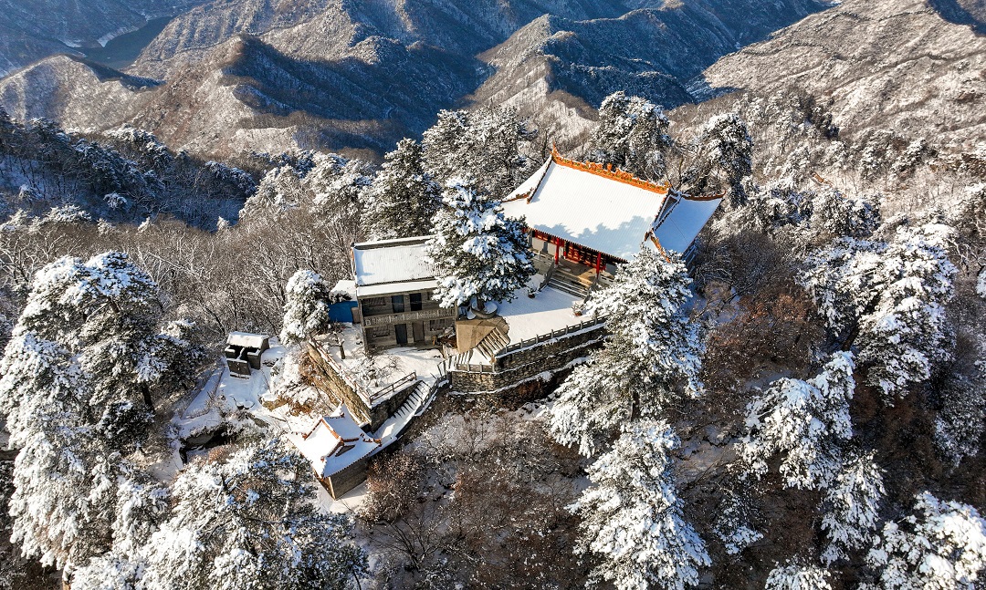 1月23日,秦嶺南五臺(tái)山上白雪皚皚、銀裝素裹,充滿詩情畫意,如同一幅水墨畫卷。