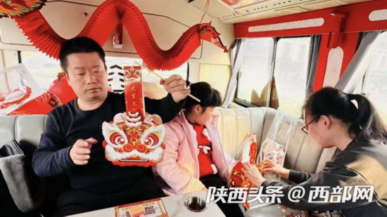 弦管千家沸此宵,花燈十里正迢迢?;?,是元宵節(jié)的重要元素,也是喜慶吉祥的象征。在西安城市觀光車上,市民將材料拼疊,組裝,最后點(diǎn)綴上流蘇與中國結(jié),元宵花燈就完成了。