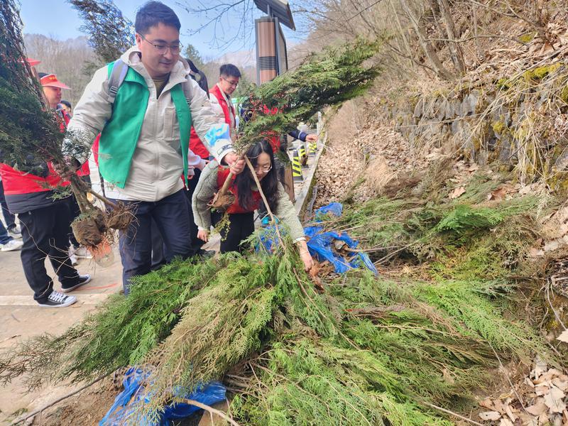 中午時(shí)分,當(dāng)植樹(shù)任務(wù)完成大家稍作休息后,陜西公眾信息產(chǎn)業(yè)有限公司50多名員工又馬不停蹄地拿上垃圾袋撿拾山里的垃圾,他們心懷對(duì)大自然的敬畏之心,手持勞動(dòng)工具和垃圾袋,分工協(xié)作、相互配合,井然有序地穿梭在山林里、河道旁,把游客遺落的垃圾撿拾干凈……“這些‘紅馬甲’志愿者們是公司團(tuán)委的青年科技工作者,平均年齡只有28歲,平日里他們是踐行網(wǎng)絡(luò)強(qiáng)國(guó)和數(shù)字中國(guó)、實(shí)現(xiàn)科技自立自強(qiáng)征程上的‘追夢(mèng)人’,今天來(lái)到山野間,他們化身為捍衛(wèi)秦嶺生態(tài)的‘清道夫’,俯拾間‘清’出一片愜意的綠水青山,舉手間綻放一抹絢麗的青春色彩?!痹摴緢F(tuán)委書(shū)記王世頂說(shuō)。