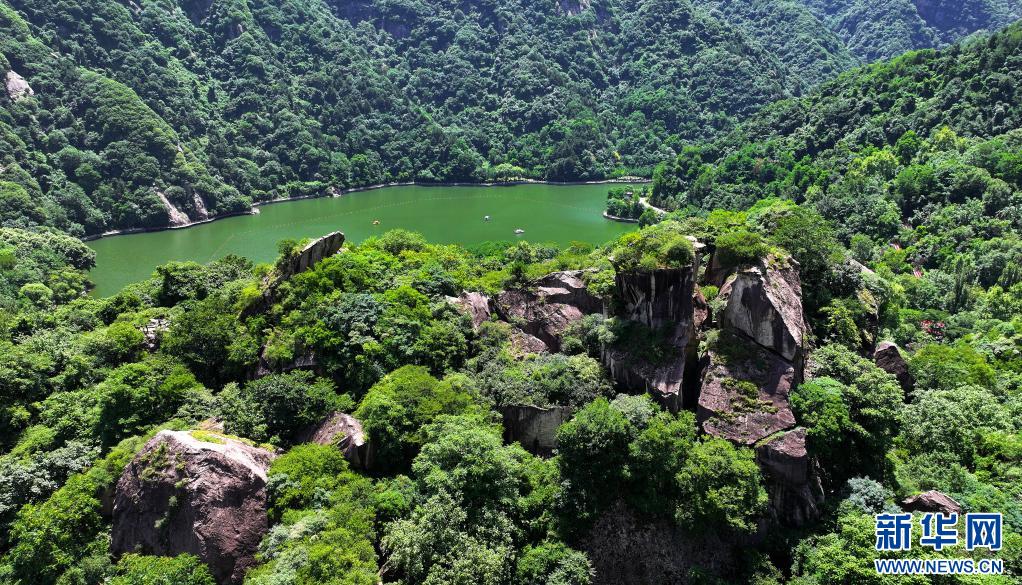 陜西省西安市翠華山景區(qū)綠樹(shù)掩映下的山崩景觀(6月24日攝)。