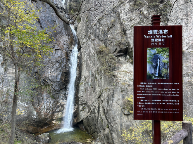 園內(nèi)有眾多瀑布,如彩虹瀑布、仙鶴橋瀑布等,瀑布飛瀉而下,激起層層水霧,在紅葉的映襯下更顯靈動。從空中俯瞰,瀑布猶如銀針貫穿于萬木之中,與周圍的山巒、樹木共同構(gòu)成了山水相依的自然景觀。