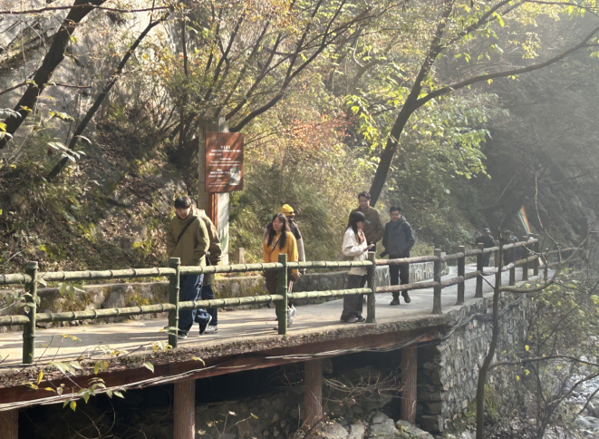 漫步初冬的太平國家森林公園,如入畫境,“楓”景迷人,黃櫨醉客。無論是登高賞瀑的沉浸游,還是隨行觀景的休閑游,秦嶺秋冬的詩意之美無處不在。