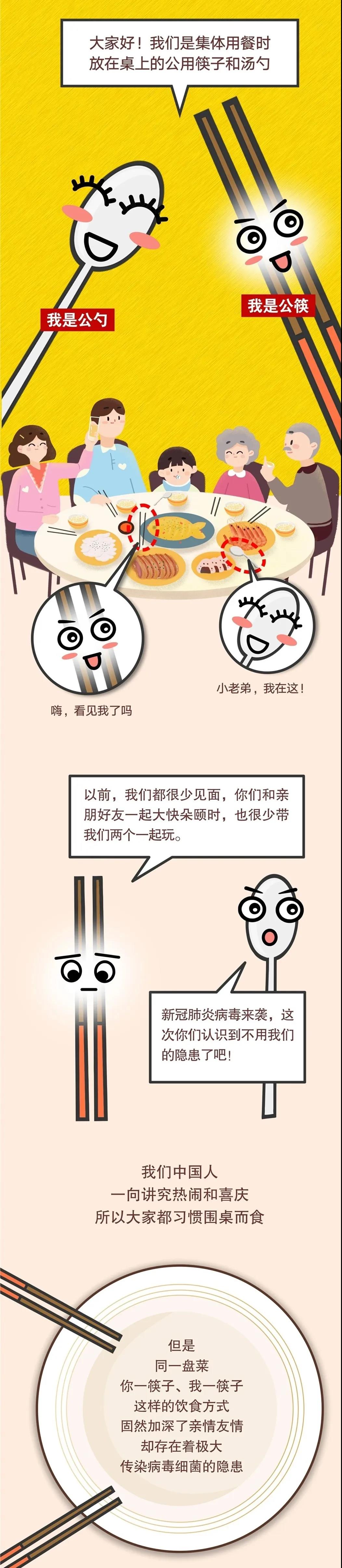餐桌舉止非小事,一筷一勺見文明,親情友情不可少,防病除菌更重要,所以請養(yǎng)成使用公筷公勺的良好習(xí)慣!為有效防止病毒在餐桌上蔓延,讓安全、健康、文明的用餐方式,惠及每個家庭、每位居民。